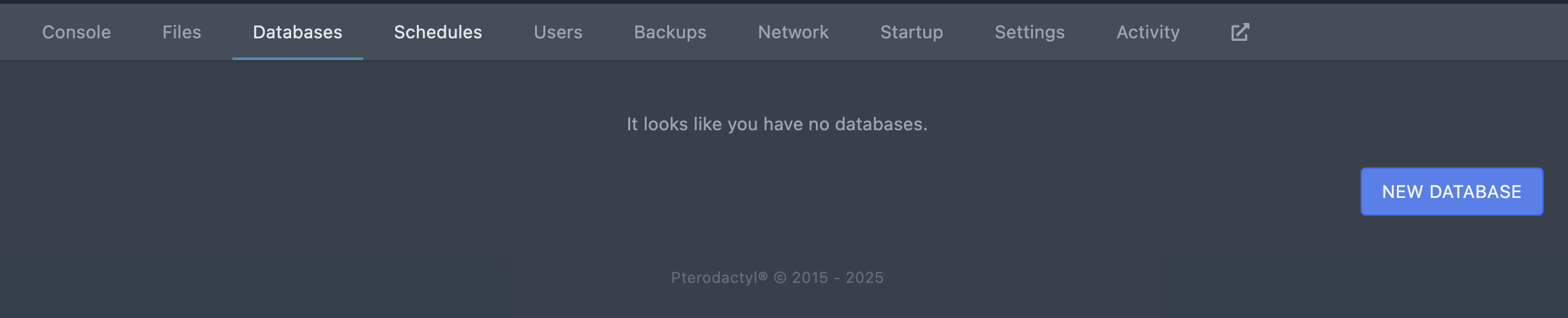 데이터베이스를 생성하기 위해 먼저 Pterodactyl 패널에 접속해야 합니다: